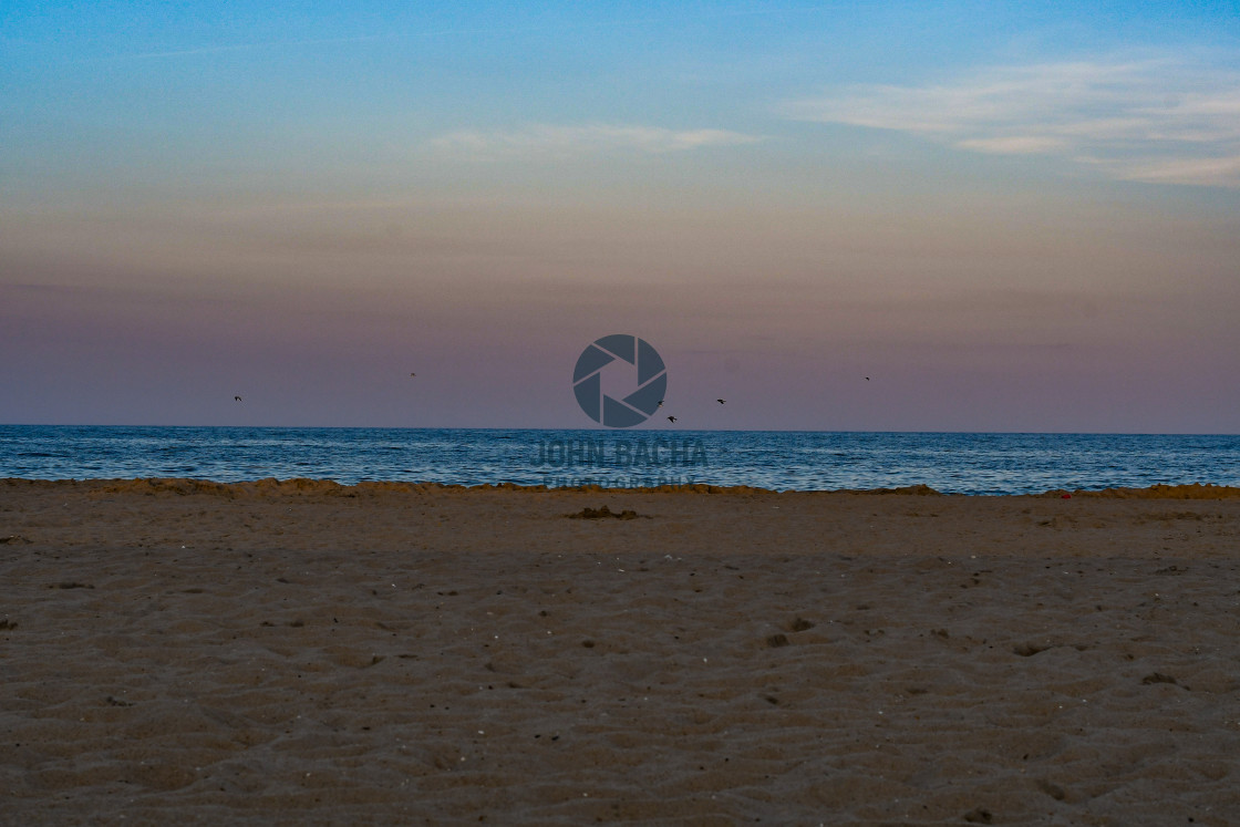 A view of the beach just before night fall